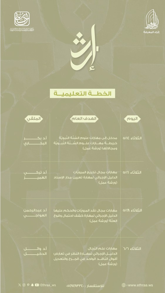 باقة اللقاءات العلمية المتخصصة في علم السنة وعلومها.