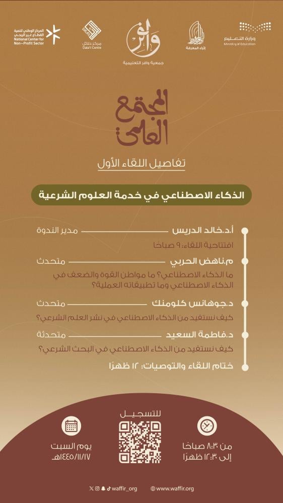 لقاء علمي تفاعلي يخدم الباحثات الشرعيات وطالبات الدراسات العليا في توظيف الذكاء الاصطناعي في البحوث العلمية.