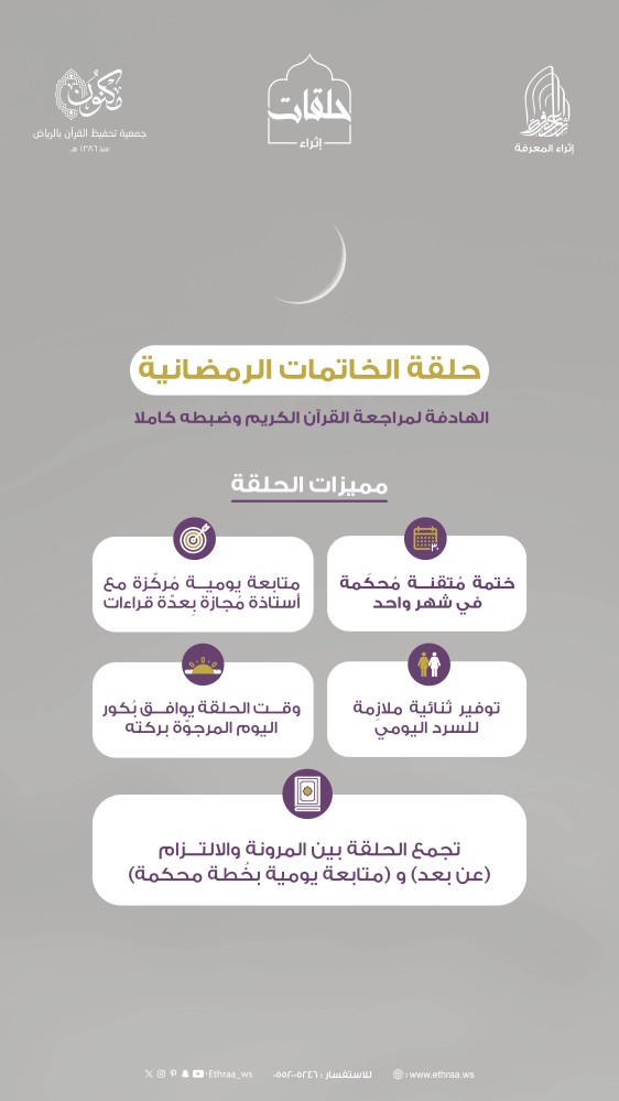 * تلتزم المستفيدة بمراجعة النصاب اليومي [جزء واحد يوميًا باستثناء اليوم الأول جزئين] طوال شهر رمضان المبارك.